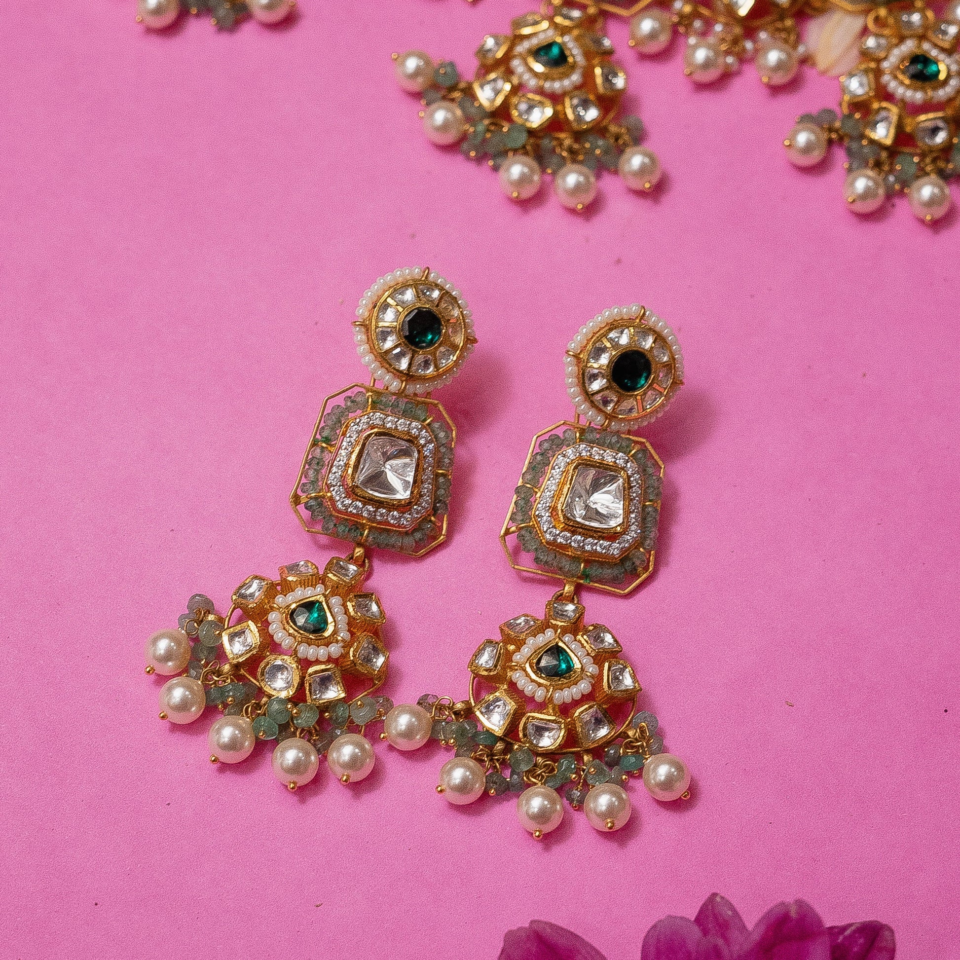 AN 22K GOLD TOPS STUDDED WITH KUNDAN , MOZONITE STONE , AMERICAN DIAMOND , SHINY GOLD BALLS , KHAKA MOTI, WHITE BITS, AND FINE EMERALD MOTI ; DAZZLE BRIGHT FOR EVERY VIBE...